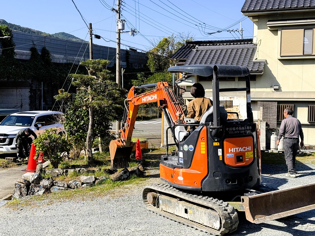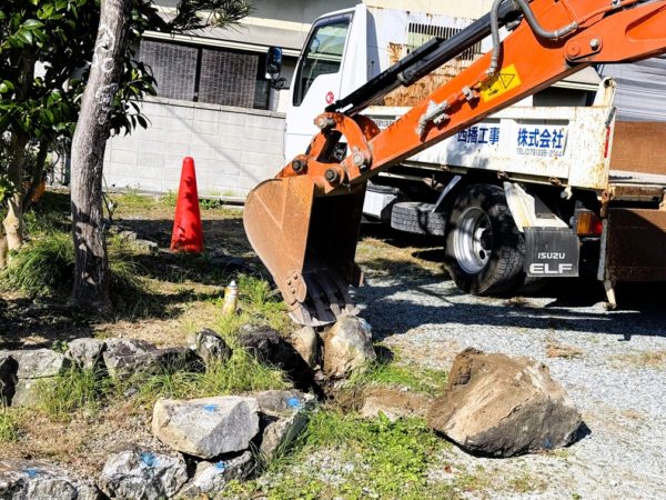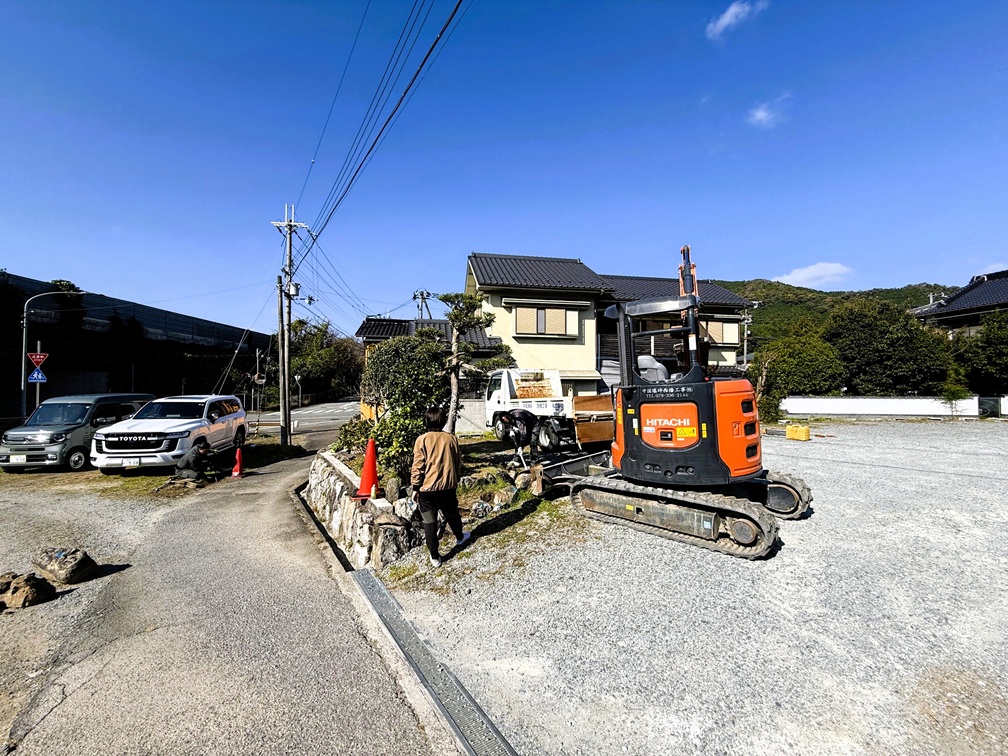 まずはメイン駐車場の石垣を1m程度撤去し、広く入りやすいようにしていきます。